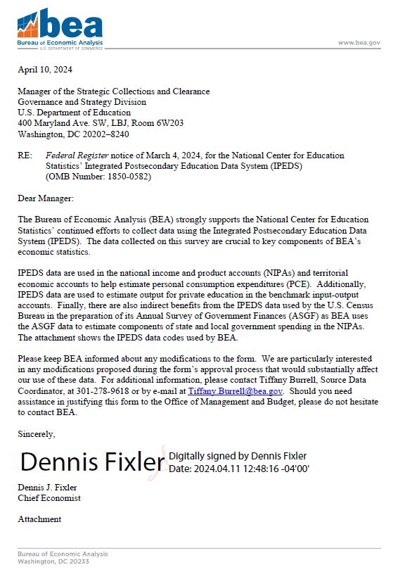 comment from the Bureau of Economic Analysis (BEA) expressed strong