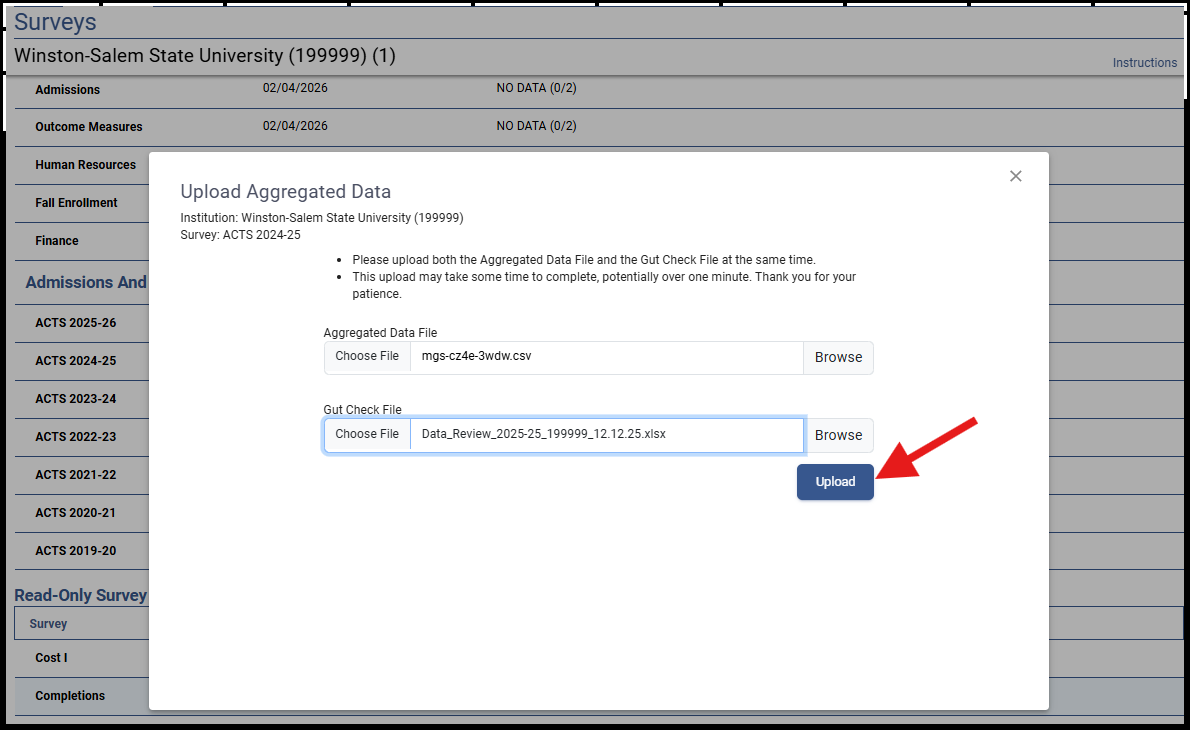 Step 3: Upload populated student-level data file templates to the ACTS Aggregator Tool