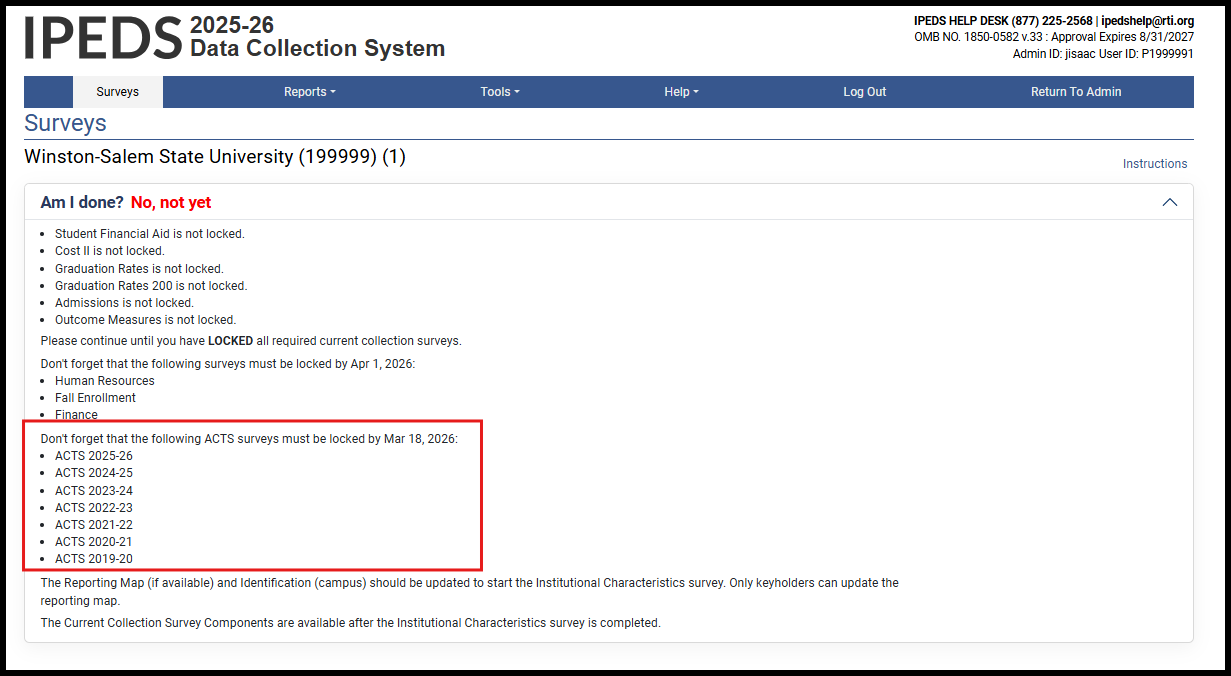 Institutional eligibility for the ACTS component was informed by President Donald J. Trump’s Presidential Memorandum on August 7, 2025 entitled “Ensuring Transparency in Higher Education Admissions,” available at https://www.whitehouse.gov/presidential-actions/2025/08/ensuring-transparency-in-higher-education-admissions/ as well as Secretary Linda McMahon’s subsequent directive to NCES to initiate a series of changes to IPEDS during the 2025-26 school year.