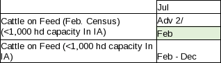 Data from Iowa’s additional Cattle on Feed Inquiry (funded under a cooperative agreement with Iowa Department of Agriculture and Land Stewardship) for operations with less than 1,000 head capacity is included with the State’s monthly Cattle on Feed release.