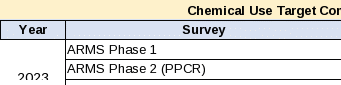 The ARMS Phase 2 Chemical Use Survey is normally conducted every year and it consists of two versions; the Production Practices and Costs Report (PPCR), and the Production Practices Report (PPR). The PPR component is conducted with NASS-only funding to gather field crop chemical use data. The PPCR is co-funded by a cooperative agreement with the USDA Economic Research Service (ERS). The PPCR component efficiently collects costs associated with the various production practices to complete the cost of production estimates for ARMS targeted crop commodities. The ARMS Phase 2-PPCR efficiently collects detailed cropping practice and cost data by focusing on field-level and expanding to whole farm, thus greatly reducing respondent burden while maintaining accuracy of reported data. NASS will continue to reuse these data enabling NASS to produce some chemical use estimates at appropriate geographic level(s) based on extent of coverage.