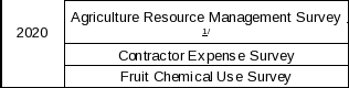 The Fruit and Vegetable Chemical Use Surveys are conducted on a rotational basis. Projected funding for the next three years has allowed for the reinstatement of the annual rotation.