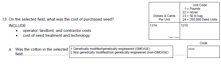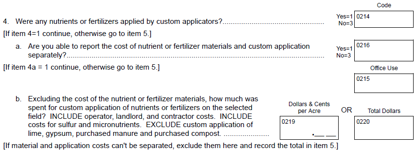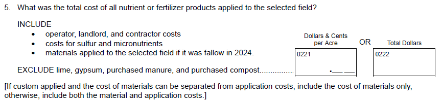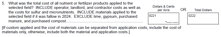 NEW Question 4c: “How much was spent for fungicide products applied to the selected field? INCLUDE operator, landlord, and contractor costs”