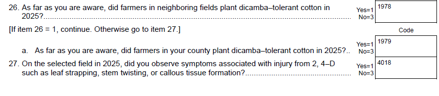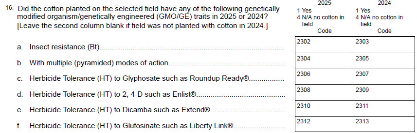Question 5 “boll weevil eradication program (BWEP)?” – Removed.