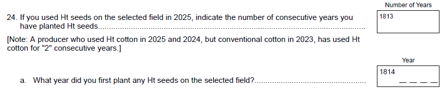 Question 1b From: “Was the selected field transitioning into organic cotton production in 2025?”
