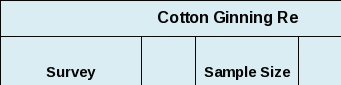 The respondent universe for the Cotton Ginnings program consists of all cotton gins in the 17 program states. No sampling is used. All operating gins, are mailed a letter and Web instructions at the beginning of the season. Operations that will not gin cotton this season or who have dismantled their equipment will be removed from the sample for the current year. During the crop year, each gin receives a questionnaire on which to enter summary data for the current monthly or semi-monthly period. Contacts conclude when ginning is completed for the season. All operations will receive a final questionnaire by March.