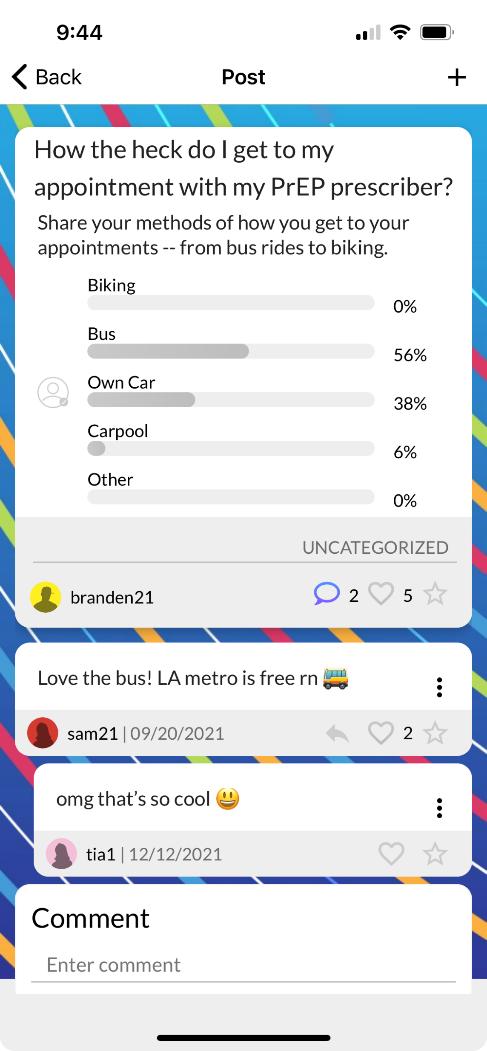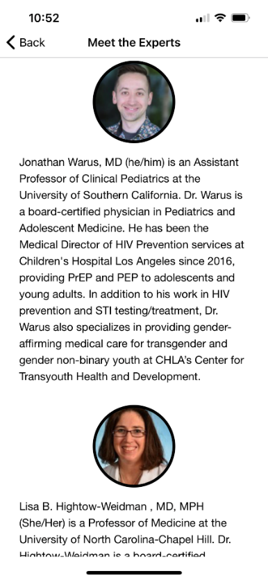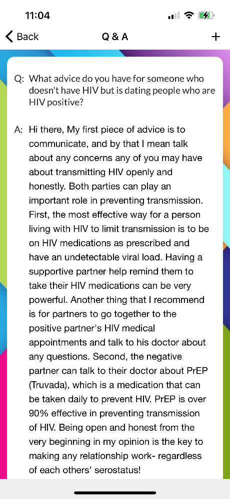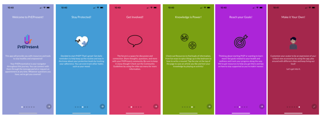 The EPICC+ app is designed to be a safe space for users to explore fun and educational material related to sexual health, nutrition, relationships, careers, advocacy, finance and more. Users can opt to read articles on these topics, complete quizzes and other interactive games or even ask anonymous questions to health care providers to gain knowledge on topics important to them. Users of EPICC+ can also leverage tools to help them achieve their health and wellness goals, such as receiving medication reminders to help keep up their adherence to PrEP, as well as connect anonymously with a community of people who can offer a support and insight on issues or experiences, they may also have encountered.