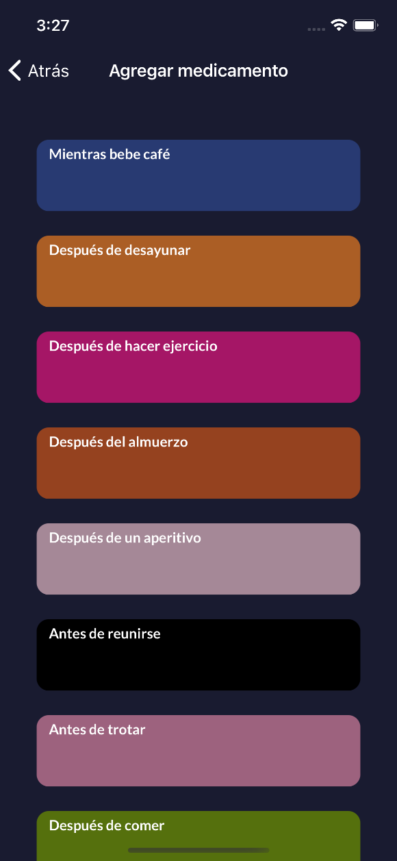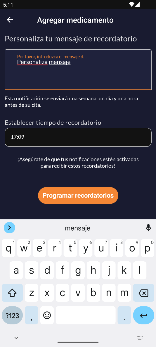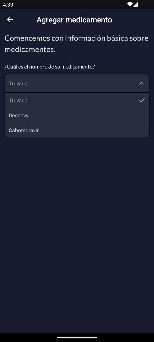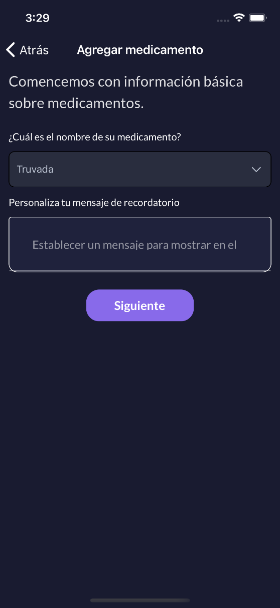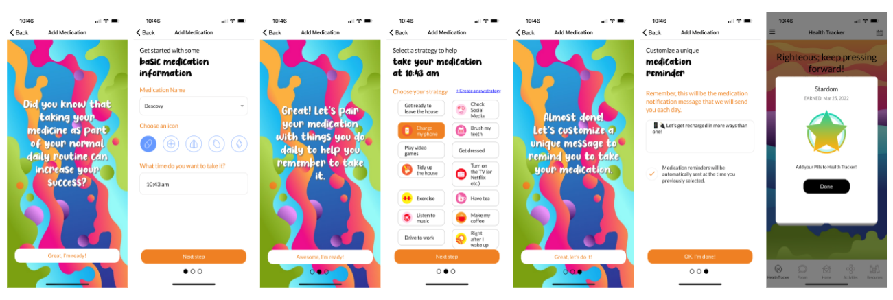 From the home screen, users can set up their health tracker, starting by inputting their medication type, choosing a strategy to link it to and customizing their medication reminder notification text.