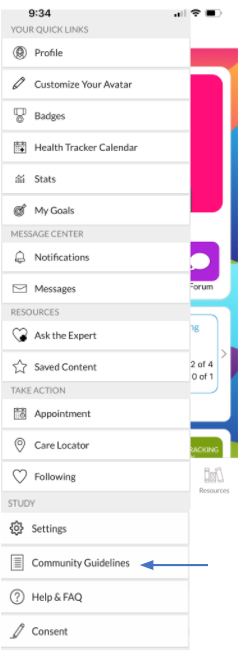 Users can access the forum via the bottom navigation bar or the “Just for You” section on the home screen. Here they can read what others have posted and contribute their own thoughts. Upon their first time in the forum, they will be presented a pop-up message asking them to agree to the study’s Community Guidelines that encourage a safe and tolerant space for people to express themselves.