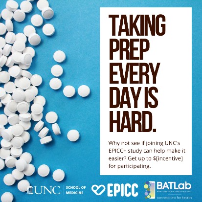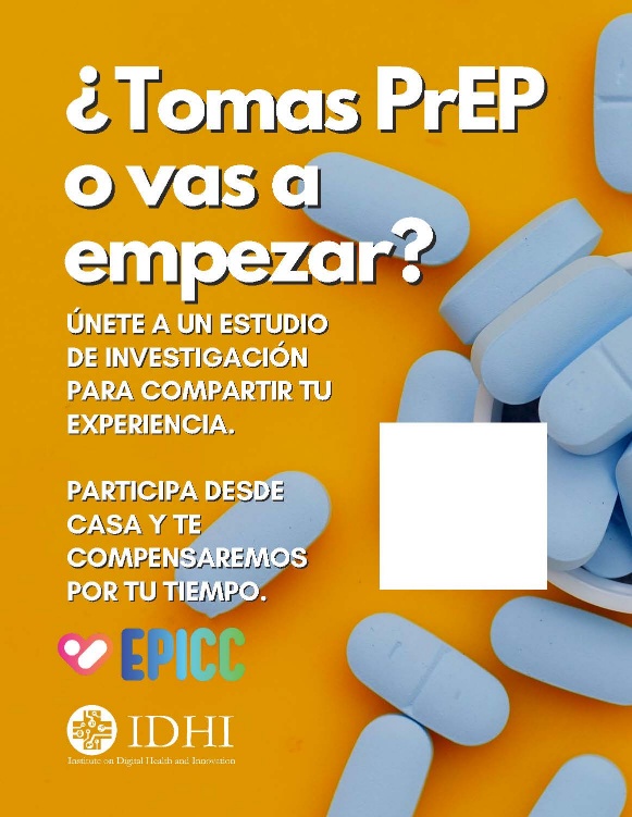 ¿Usas PrEP y te interesan las investigaciones? ¿Por qué no te unes al estudio EPICC+ de [FSU’s or site name’s] a ver si te facilita las cosas? Recibe hasta [incentive] por participar.