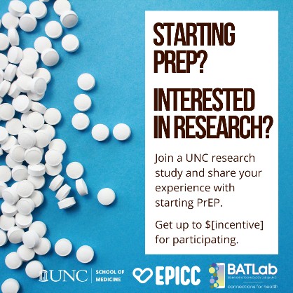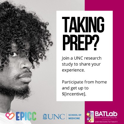 Recibe información sobre PrEP en tu teléfono. Únete al estudio de investigación EPICC+, participa desde casa y recibe hasta [incentive].