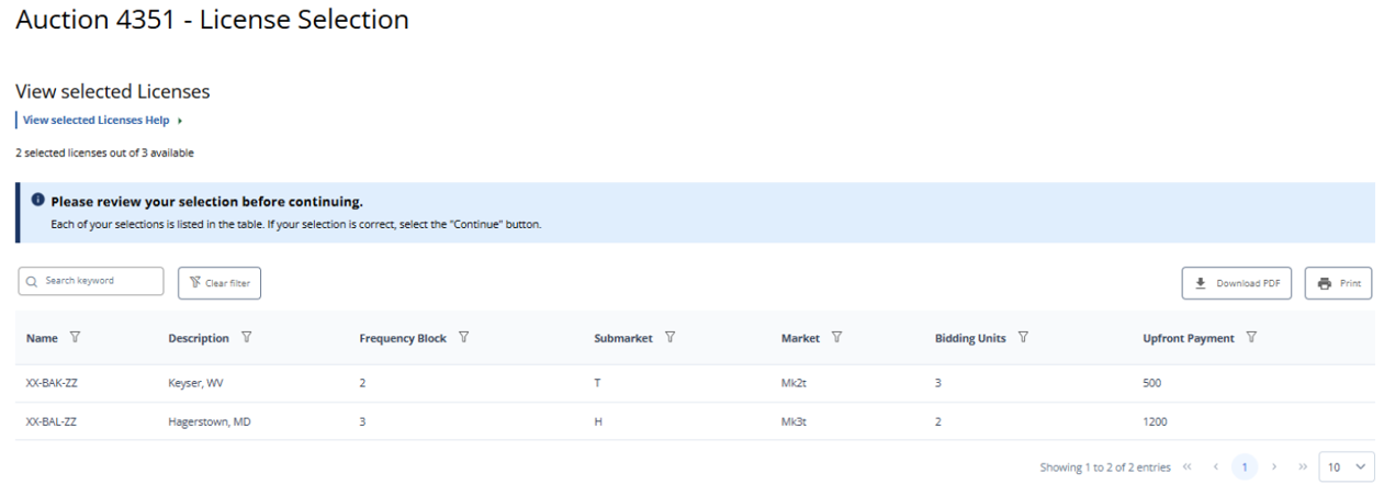 (Error Summary With No Errors Detected as Displayed to Broadcast Table Service Auction Applicants)