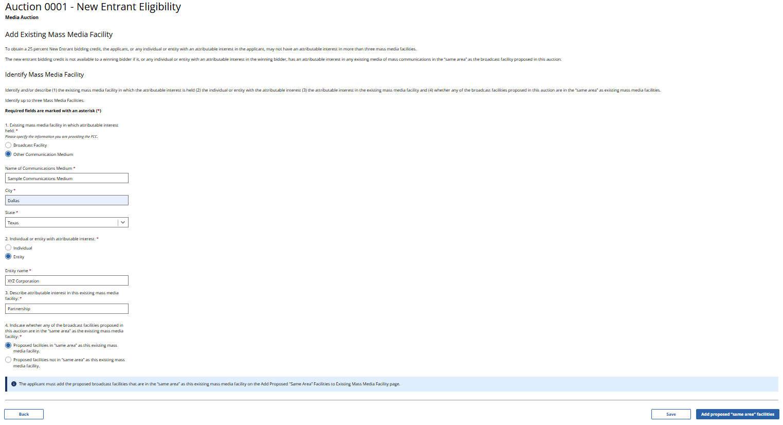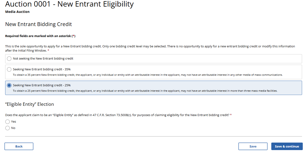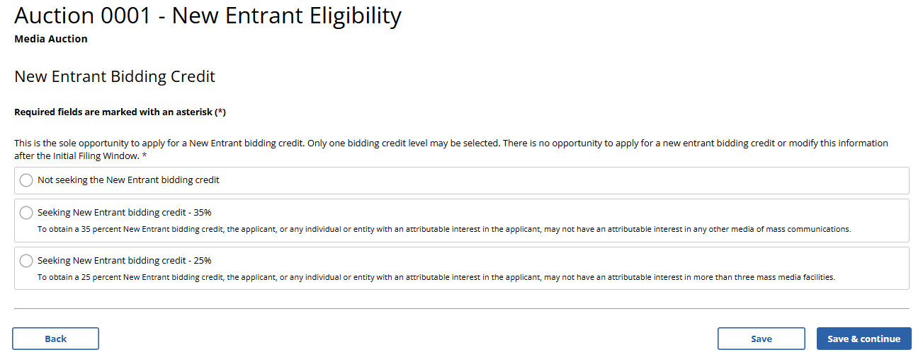 (Displayed Only to Broadcast Auction Applicants Seeking a 25% New Entrant Bidding Credit)