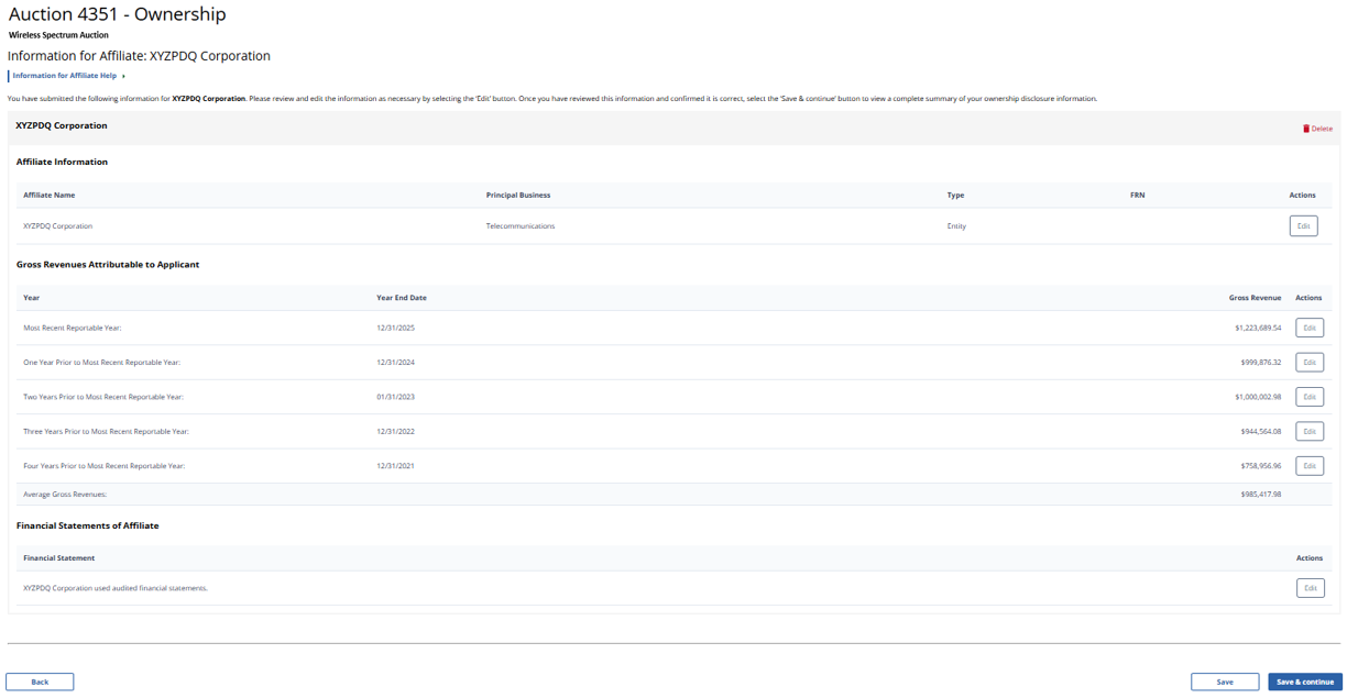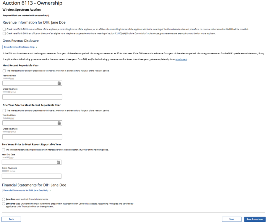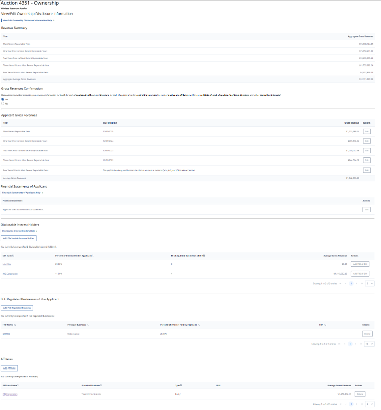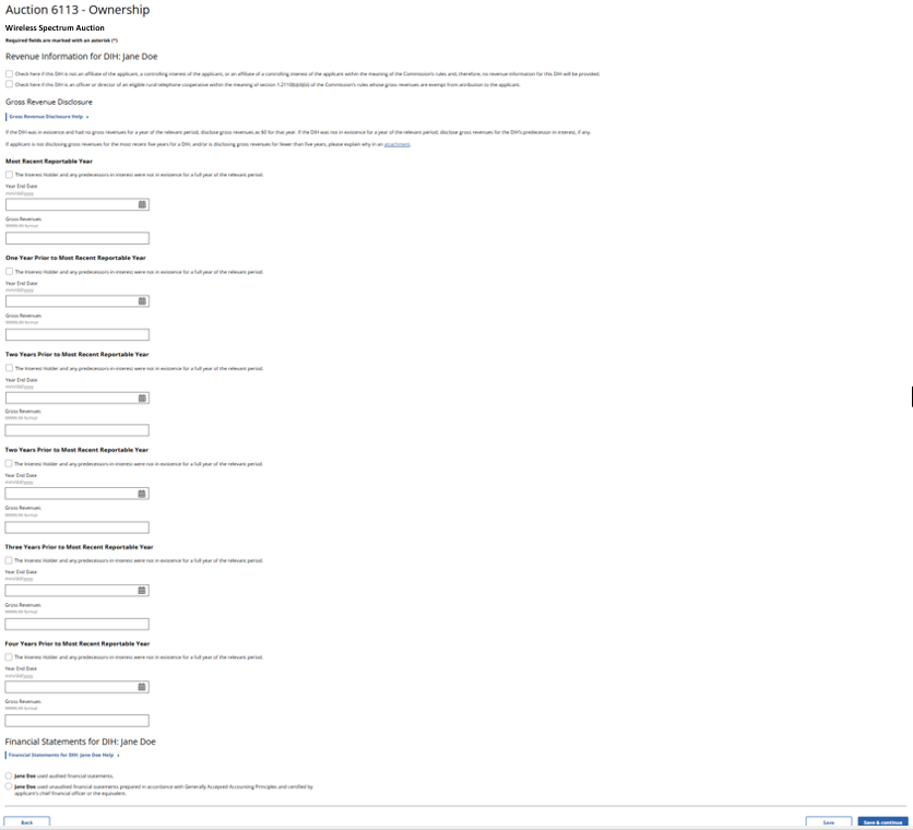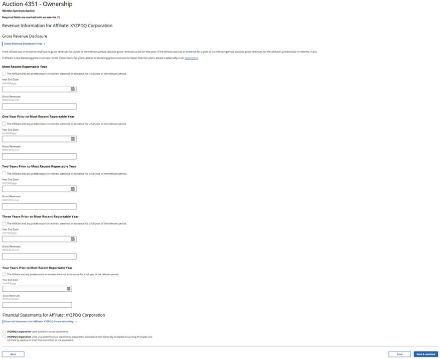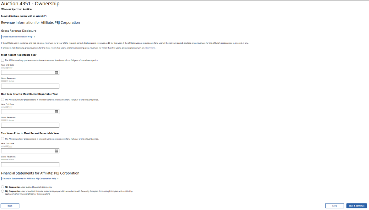 (Displayed Only to Wireless Auction Applicants Seeking a Small Business Bidding Credit Where Preceding 5 Years of Gross Revenues Must Be Disclosed)