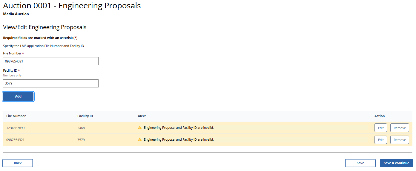 (Error Summary With Errors Detected as Displayed to Broadcast Table Service Auction Applicants)