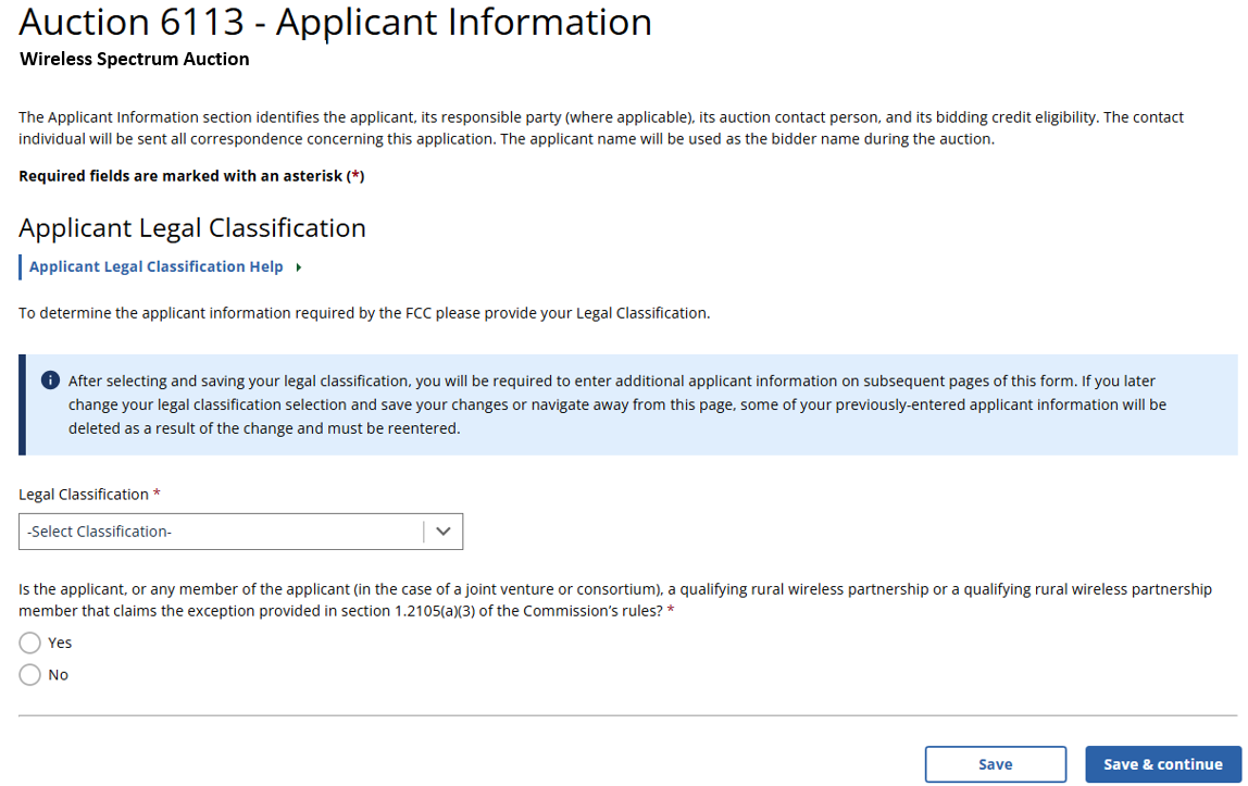 (Displayed to Wireless Auction Applicants in Non-Spectrum Act Auctions)
